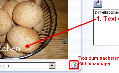 Wollen Sie weiteren Bildern einen Text hinzufügen, klicken Sie auf ">" im unteren rechten