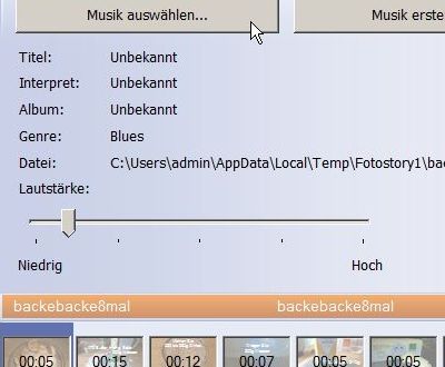 Die Anzeigedauer des Fotos wird automatisch an die länge der Audioinfo angepasst.