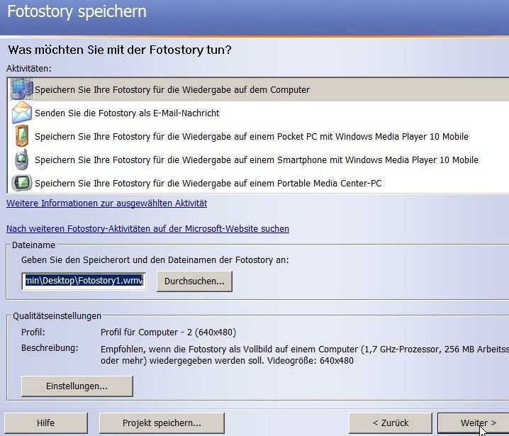 Speichern Sie das Projekt gleichzeitig als Fotostory-Projekt ab, können Sie dieses später überarbeiten und anpassen.