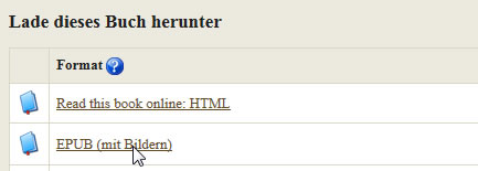 Suchen Sie im zum Beispiel nach "Nils Holgersson" und laden Sie die EPUB-Version herunter.
