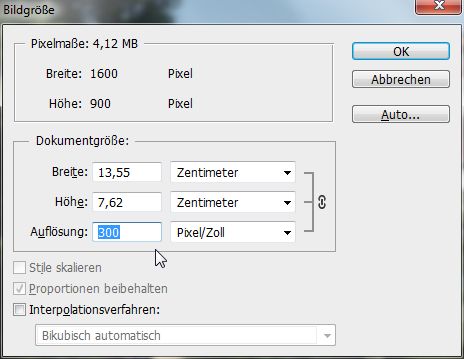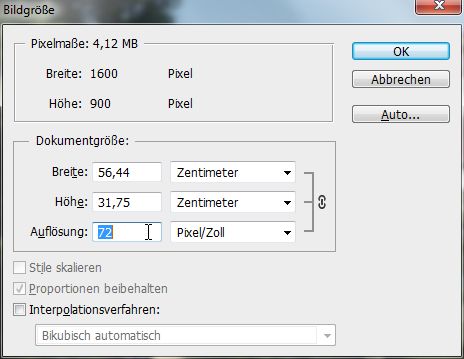 Achtung! Bilder mit einer Auflösung von 72dpi (Beispielbild) sehen auf dem Bildschirm gut aus und erscheinen die ausreichend groß zu sein, eine Umrechnung der Bildgröße (ohne Interpolationsverfahren) in 300dpi zeigt, dass das Beispielbild nicht ca. 56x31cm sondern nur lediglich in einer Größe von ca. 13x7cm gedruckt werden kann.