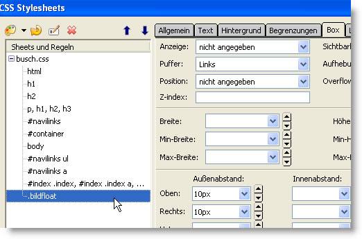 Erstellen Sie eine neue Regel für eine Klasse .bildfloat (Der Name ist beliebig wählbar)